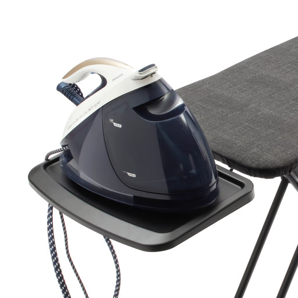 Модель оснащена підставкою для парових систем і прасок (до 40×22 см), що робить її універсальною для будь-якої техніки. Регулювання висоти в 7 положеннях від 75 до 98 см дозволяє легко підлаштувати дошку під ваш зріст для максимального комфорту.