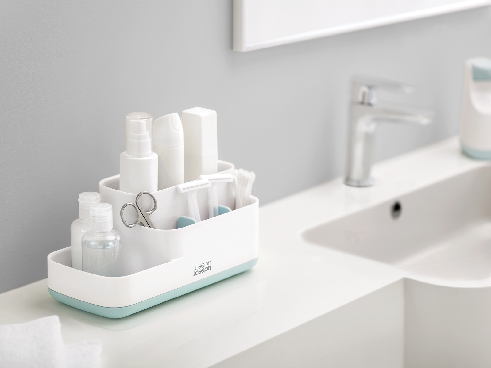 Органайзер для ванної Joseph Joseph BATHROOM, 5,1x12x12 см, білий з блакитним