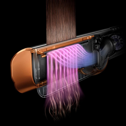 У вишуканому кольорі Red Velvet/Gold, цей випрямляч поєднує потужність повітряного потоку та інтелектуальний контроль температури для створення гладкого, блискучого волосся без шкоди від перегріву. Технологія мокрого випрямлення дозволяє висушити й випрямити вологе волосся одночасно, використовуючи три температурні рівні — 80°C, 110°C і 140°C. Для сухого волосся передбачені режими 120°C, 140°C і Boost, щоб легко освіжити або зафіксувати зачіску.